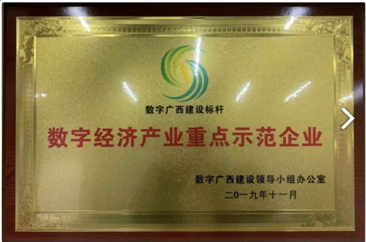 公司自成立以来,通过科技型企业认定、高新技术企业认定、软件企业认定、西部大开发鼓励类产业、瞪羚企业,数字广西建设标杆企业、涉密资质乙级、广西战略性新兴产业等国内认证,获得ISO9001质量管理体系证书、ISO20000信息技术服务管理体系证书和ISO27001信息安全管理体系证书。是正在培育的独角兽企业,公司是国家社科院蓝迪智库一带一路首推的20家优秀企业之一,是自治区重点支持的11家新兴服务业企业之一。公司在智慧城市领域创新建设模式,承建的贵港智慧城市,2018年8月,入选中国智慧城市国际博览会“全国4个智慧城市最佳实践案例”;2018年9月,获得“中欧绿色智慧城市技术创新奖”;2018年11月,中国的绿色智慧城市发展高峰会议在贵港召开,承建的项目作为示范在全国推广; 2019年9月,获得“中欧绿色智慧城市综合创新奖”。