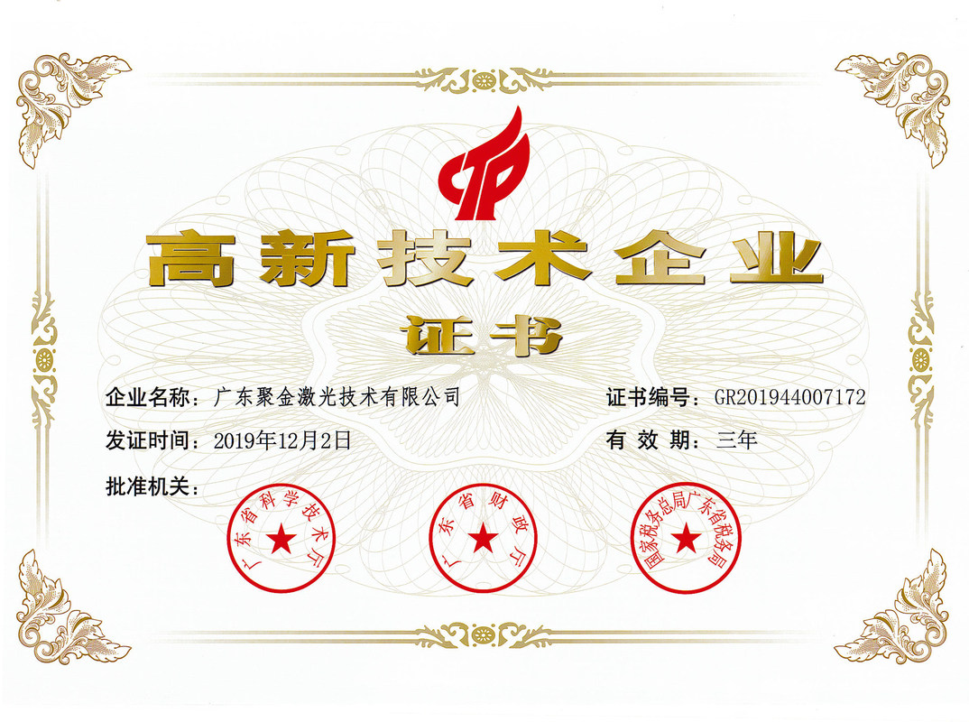 广东聚金激光技术有限公司是一家专注于激光应用领域的技术专家型企业,坐落于广东省江门市蓬江区。公司主要从事光纤输出YAG脉冲激光器、光纤输出半导体脉冲激光器 、高功率半导体连续激光器、激光智能装备的研发生产和应用推广。