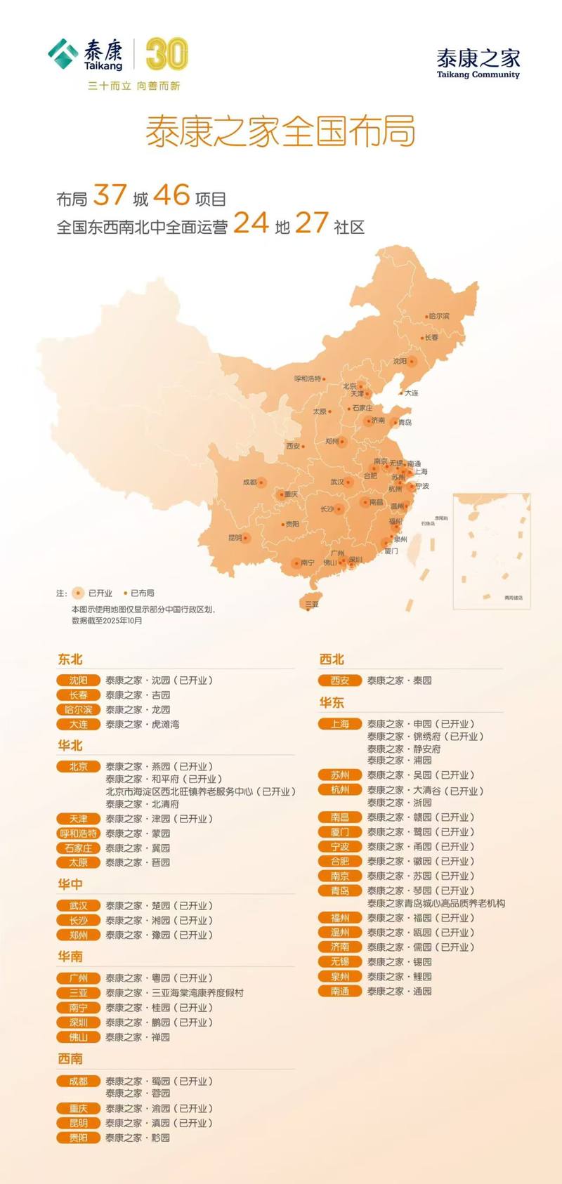 泰康人寿在全国设有北京、上海、湖北、广东、山东、西藏等36家分公司,覆盖中国大陆所有省级行政单位。各级机构超过4200家,代理人近60万人,规模保费超1300亿元。泰康人寿、泰康养老与泰康在线累计服务客户1.83亿人,累计理赔客户1461万人次,累计支付理赔金额258亿元,承担风险保额近50万亿元。