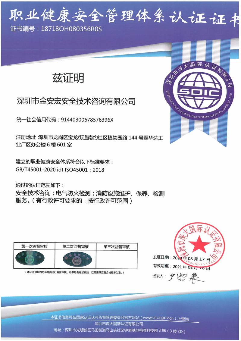 深圳市金安宏安全技术咨询有限公司本着“高效、专业、服务、安全、责任”的宗旨,竭诚为深圳市广大生产经营单位提供优质的安全生产技术服务。