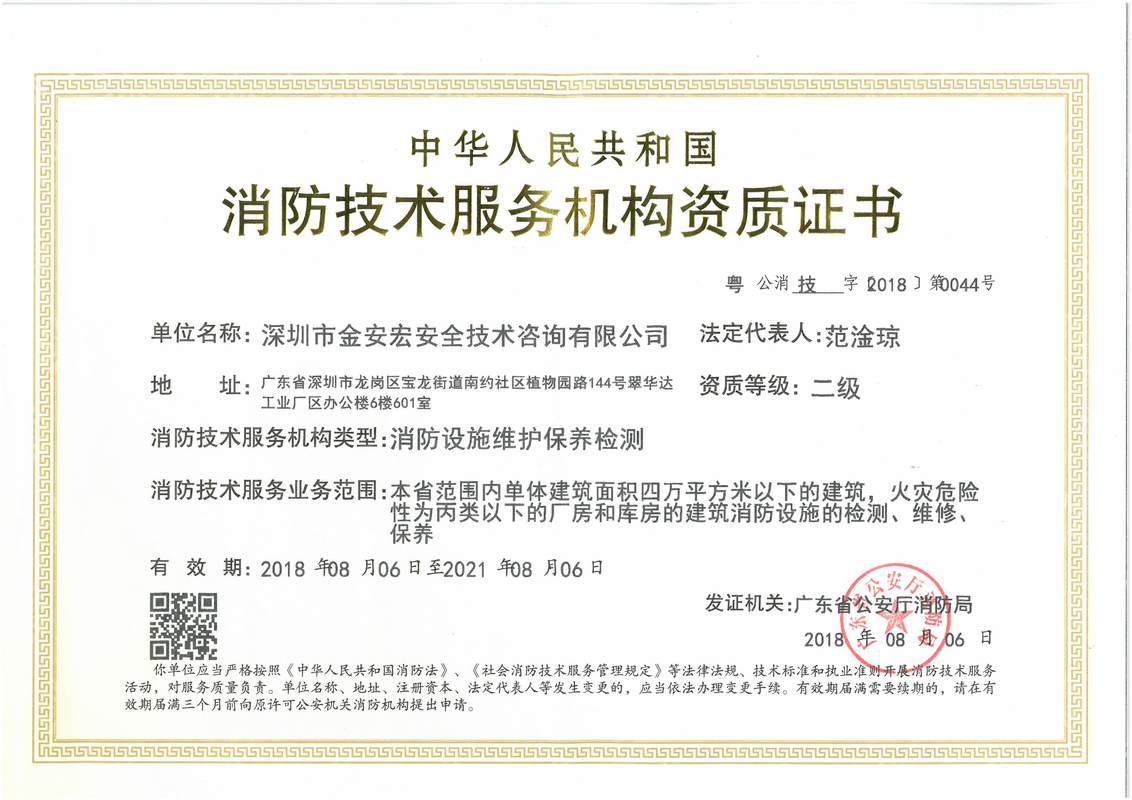 • 消防技术服务机构资质证书