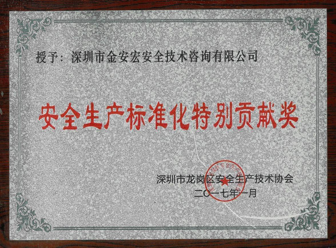 2017年1月获得安全生产标准化特别贡献奖;