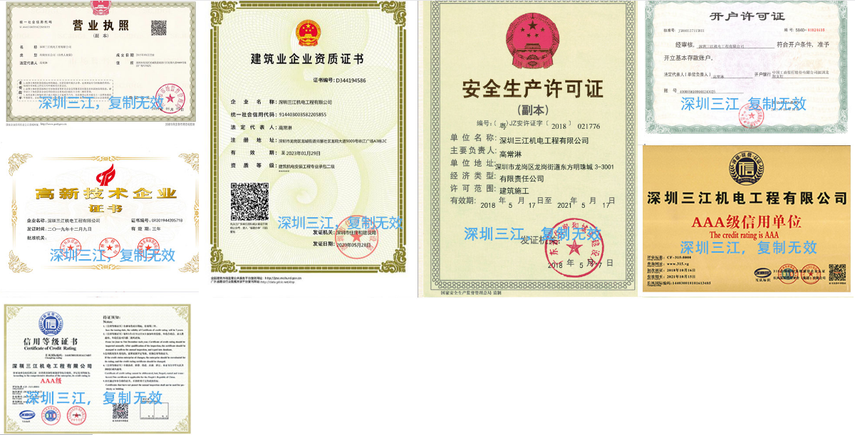 深圳三江机电工程有限公司成立至今,具有建筑机电安装工程专业承包叁级资质。另外,公司还通过了ISO9001质量管理体系、环境管理体系、健康安全体系等系列认证。 在业内有着良好的口碑,也取得了不错的业绩;公司的发展定位是专注于服务珠港澳大湾区各大药企,不急于快速扩张做大,力求做到业内质量最优服务最好。公司的主要服务对象为深圳立健药业有限公司、国药集团致君(深圳)制药有限公司、国药集团致君(深圳)坪山制药有限公司、深圳翰宇药业股份有限公司、深圳赛保尔生物药业有限公司、深圳万乐药业有限公司、深圳信立泰药业股份有限公司、深圳海滨制药有限公司、扬子江药业集团广州海瑞药业有限公司、安士制药(中山)有限公司和香港美亚制药厂有限公司等诸多知名药企。