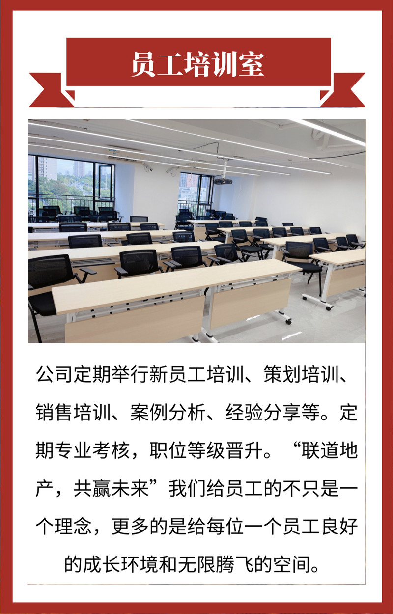 公司汇聚了一大批具有专业技能的各类地产精英。公司自成立以来一直本着“寻求卓越 诚信服务 开拓创新 共赢未来”的服务理念。我们给员工的不只是一个理念,更多的是给每位有理想有激情的员工一个良好的成长环境和无限腾飞的空间。