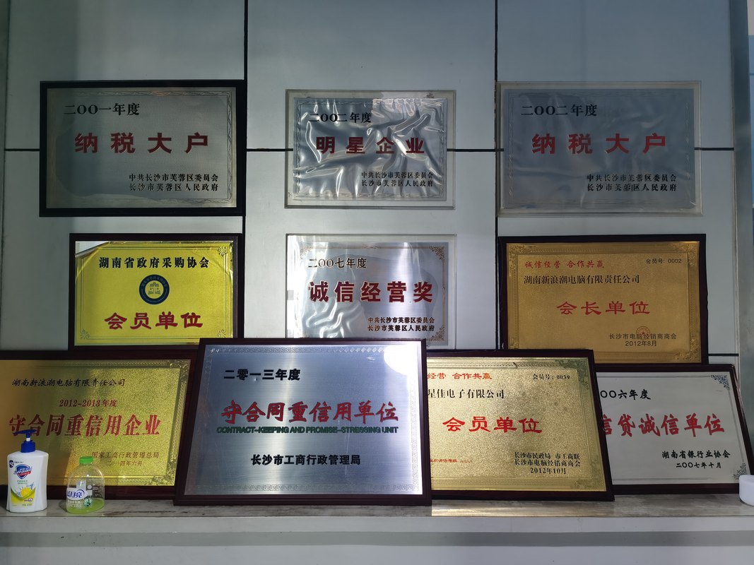 湖南新浪潮多次被国家工商行政管理总局以及湖南省工商行政管理局评为《重合同守信用企业》;被长沙市消费委员会授予《消费者信得过单位》及《不经销假冒伪劣商品单位》;被长沙市技术监督局评为《优秀售后服务单位》;被湖南省技术监督局授予计算机行业《产品质量信得过单位》。