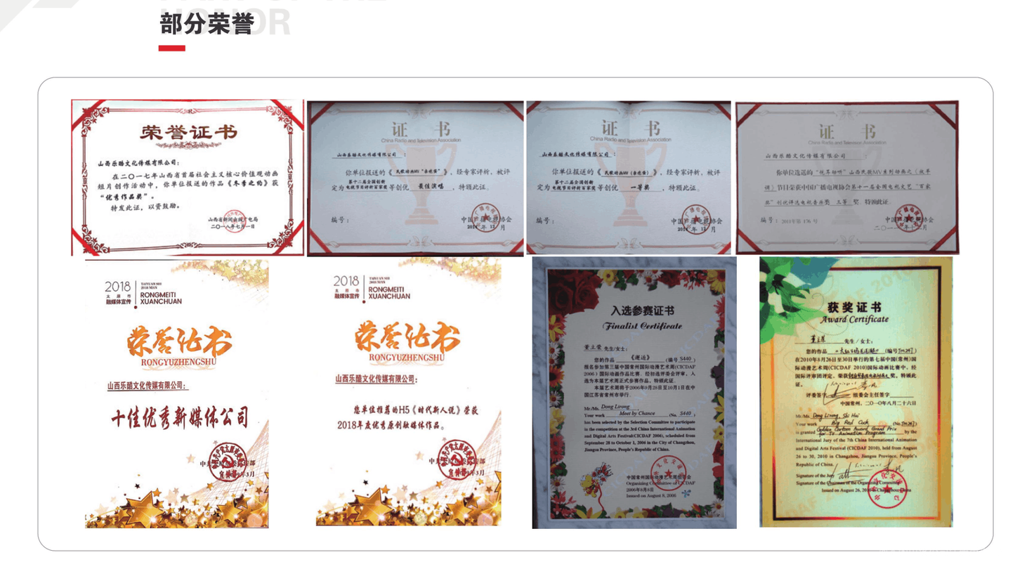 山西乐酷文化传媒有限公司是一家专门从事影视动画制作的专业化机构,2013年被文化部、财政部、国家税务总局评为“国家级动漫企业”。原创作品《亲圪蛋——山西民歌系列动画》中的《大红公鸡毛毛腿》《走西口》获得2011、2012中国(常州)国际动画节“最佳电视动画片大奖”。是唯一一部获的得最高奖项的中国作品。2012年,《大冒险-西游记》获得杭州国际动漫节“金猴奖”漫画类银奖。 成为唯一蝉联两届该比赛最高奖项的获得者。截止目前为止共获得国内外各种奖项40余项。是目前山西省获得荣誉最高,奖项最多的动画项目。