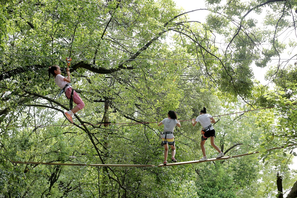 “飞越丛林探险乐园 ”根据线路颜色区分难易等级,有专门为儿童设计的线路,也有针对缺乏体育锻炼、导致身体处于亚健康状态的都市学生、白领而特别打造的健身线路,以及需要团队协助的障碍环节,让参与者在欢乐的气氛中增强集体凝聚力和向心力,促进个人能力得到突破。