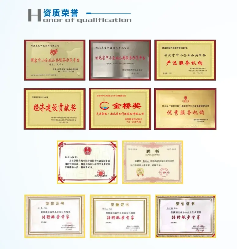 湖北展发科技股份有限公司成立于2008年,是一家为企业提供竞争性惠企政策落地和软实力提升解决方案的综合服务平台。主要业务包括国家、省、市政府资助类项目申报;高新技术企业培育、认定申报;科技成果推介、技术转移、科技成果转化;省长(市长)质量奖、智能制造示范、单项冠军企业、专精特新小巨人企业、两化融合贯标、国家(省级)技术创新平台等荣誉资质申报辅导;可行性研究报告、资金申请报告、项目建议书、商业计划书编制等。 公司于2018年和2021年连续两届被国家工信部认定为“国家中小企业公共服务示范平台”。为第一批“工信部志愿服务工作站”,公司董事长为第一批“工信部志愿服务专家”、湖北省中小企业服务中心“特聘服务专家”、湖北省科技厅“科技厅入库专家”、湖北省中小企业服务中心“中小企业公共服务突出贡献个人”、享受政府津贴专家。此外,公司还被湖北省经信厅认定为“湖北省中小企业公共服务示范平台”、“第一批服务专精特新企业服务体系平台”;为湖北省科技厅认定的“湖北省技术转移示范机构”、“湖北省技术合同登记机构”;为中小企业公共服务“标杆服务机构”,连续三次被湖北省中小服务中心评为“严选服务机构”、总经理金晶被评为中小企业公共服务“突出贡献个人”;公司总经理金晶、项目总监李少雄、武汉公司销售总监胡素琴被聘为湖北省中小企业服务中心“特聘服务专家”。 展发科技旗下拥有五家全资子公司,武汉展发科技咨询有限公司、湖北惠企科技咨询有限公司、黄冈展发科技中介服务有限公司、湖北耀臻企业管理咨询有限公司和湖北展发科技研究有限公司,服务对象遍及湖北、河南等地,服务企业6300余家,深受各主管部门和企业客户的好评。 展发科技拥有一支高素质的专业技术队伍,拥有企业管理、技术经纪、工程咨询、项目申报、财务经济、成果鉴定等领域的各类中高级人才30余人,并外聘各类专家顾问团队15余人。公司发展目标为:以专业化、实效化、精品化的服务,帮助广大企业持续发展,成为企业创新发展的“助推器”,以专业的咨询团队,丰富的咨询经验,优良的服务口碑,为客户提供最具价值的咨询服务,成为行业内卓有影响力的综合性、专业化企业服务平台。 “成人达己,成己达人”。展发科技以强大的专业服务团队和专家顾问团队,凭借多年耕耘累积的行业优势、人才优势、信息优势、厚积而薄发,为企业技术创新、产品创新、品牌升级、政策扶持、资质拓等企业发展提供菜单式、保姆式的精品服务,以卓越影响力的企业服务平台,将客户打造成最优秀的企业。展发科技愿与您一起成长,共创美好未来!