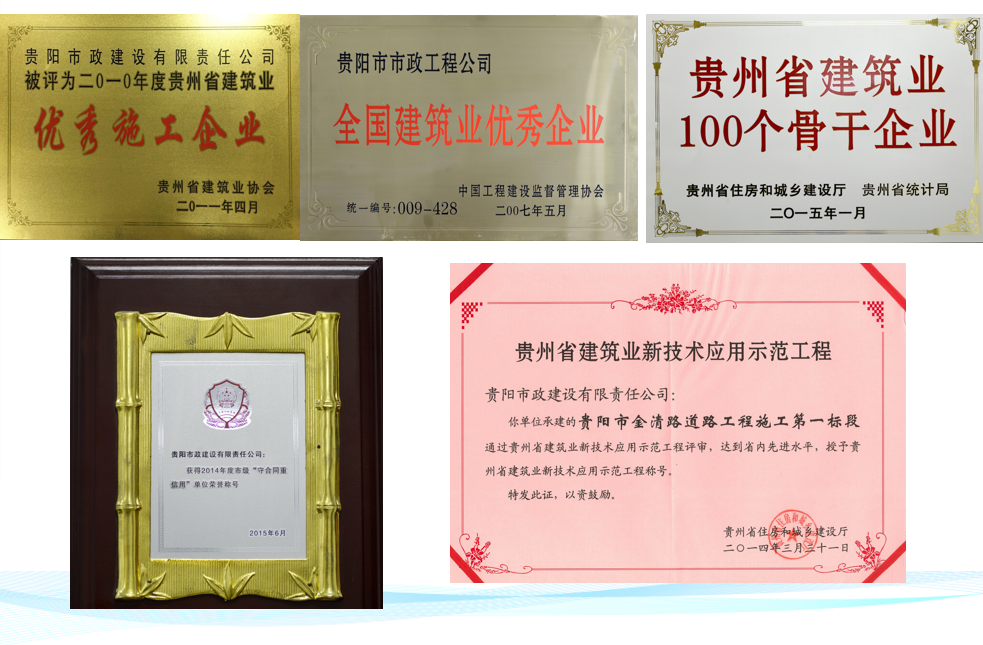 公司拥有丰富的施工经验,曾优质高效地完成了花果园立交桥、三桥立交桥、大营坡立交桥、中华路、延安路、解放路至遵义路交叉口改造、甲秀南路改造、中坝路改扩建、北京东路、桐荫路、花溪大学城花燕路、思雅路、花燕立交、盐沙路、小河污水处理厂二期、新庄污水处理厂、桐惠线、花冠路北段等贵阳市一批具有代表性的基础设施建设项目;同时积极拓展跨市、跨地区工程建设业务,承建了安顺市王若飞大道、遵义市外环路、遵义大道、茅台酒建设工程路面硬化、贵州大龙循环经济工业基地1号主干道、贵安新区电子信息产业园公租房(一期)市政道路、贵安电子信息产业园(二期)路网等项目,在服务群众便捷出行、缓解城市交通压力、促进经济社会发展等方面作出了突出贡献。