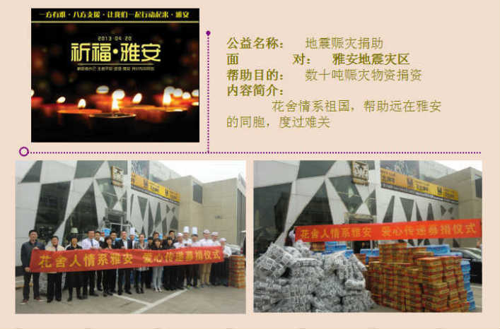 花舍集团成立于2004年,是一家致力于打造国内休闲餐饮领导品牌的综合性实业集团,目前已有花舍咖餐厅、花舍鲜之味、紫丁湘菜馆、花舍商业地产、幸福之行教育有限公司等多个品牌,并同时涉及物流配送中心等板块。