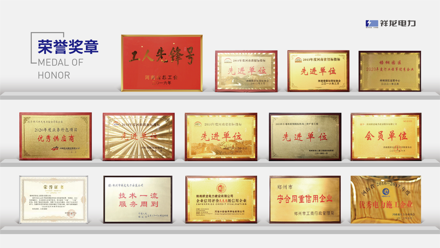 郑州祥龙电力股份有限公司成立于1998年,注册资金6000万元,员工151名。其中注册建造师(造价师)15名,中高级以上职称42名。公司是一家从事电力设施建设、运行、维护、监测服务的专业性公司,为电力用户提供全过程全生命周期的服务。公司具有电力工程施工总承包贰级、防水防腐保温工程专业承包贰级、输变电工程专业承包叁级,电力设施承装(修、试)贰级资质。