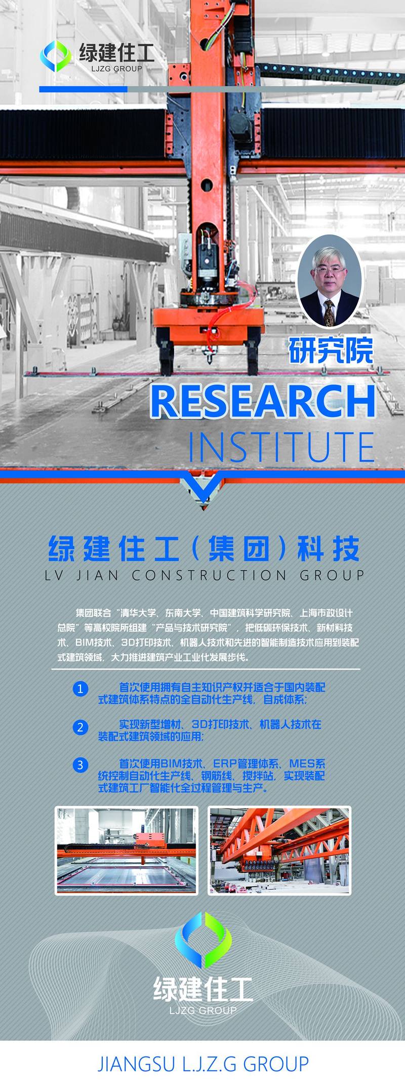 江苏绿建住工科技集团有限公司是绿地集团、江苏省建集团、太仓城投集团投资的国有企业,承载着建筑工业化转型升级历史史命,肩负着建筑产业向工业化、自动化、信息化、智能化发展的重任。积极探求“新材料、新工艺、新技术+建筑”发展模式。