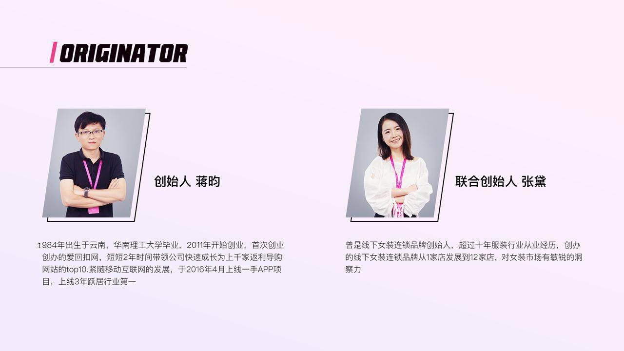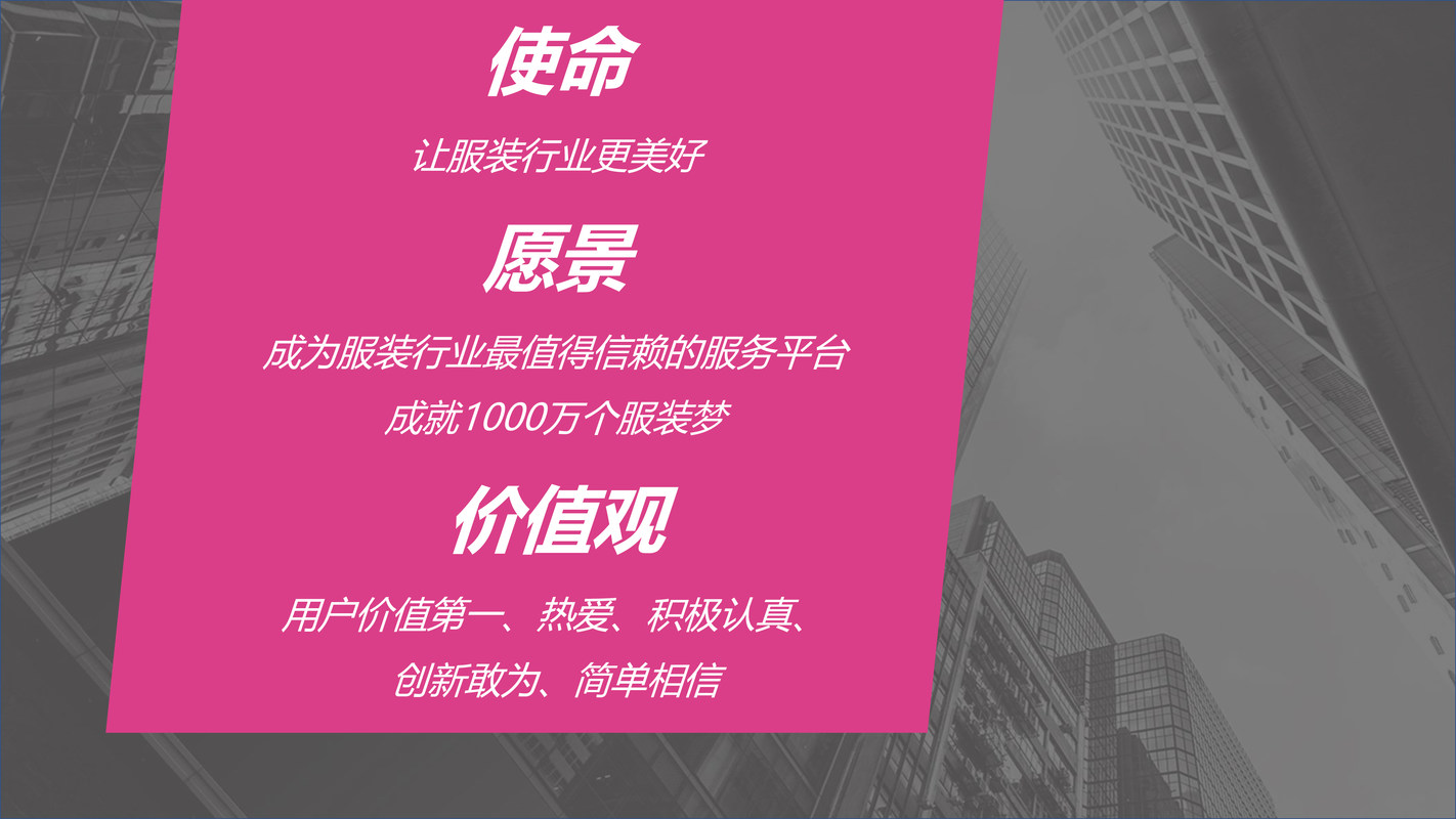 公司以“成为服装行业值得信赖的服务平台,成就1000万个服装梦”为愿景,为产业链上下游提供数据化、智能化的工具和服务,提高整个服装产业供应链的效率,降低供应链成本。旗下产品有一手APP、爆版、懒店长等等。