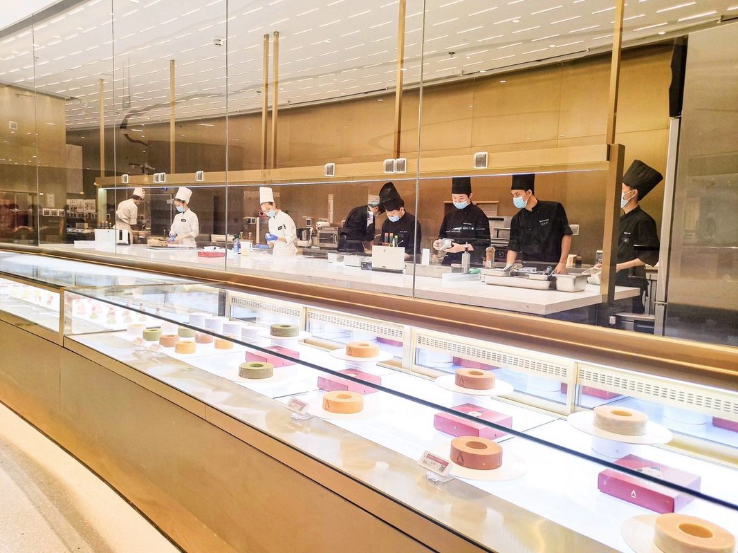 旗下品牌体验店——海岸城昂司蛋糕奇幻空间,店内上下2层楼,5600㎡,是目前全球最大的蛋糕甜点体验中心。带给消费者的是潮轻奢的空间消费体验,及奢华五星的甜品美食新体验。