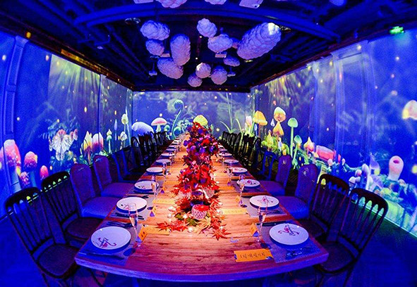 山东盛景科技集团有限公司,目前成立了创意设计中心、项目服务中心、营销中心三大板块,主要领域涵盖9D全景幻影技术、VR、XR等高精尖视觉影像技术的制作与开发,把全息投影创意用于商业化落地。率先将全景幻影技术加入到餐厅宴会行业,开创餐厅宴会全息沉浸式时代!