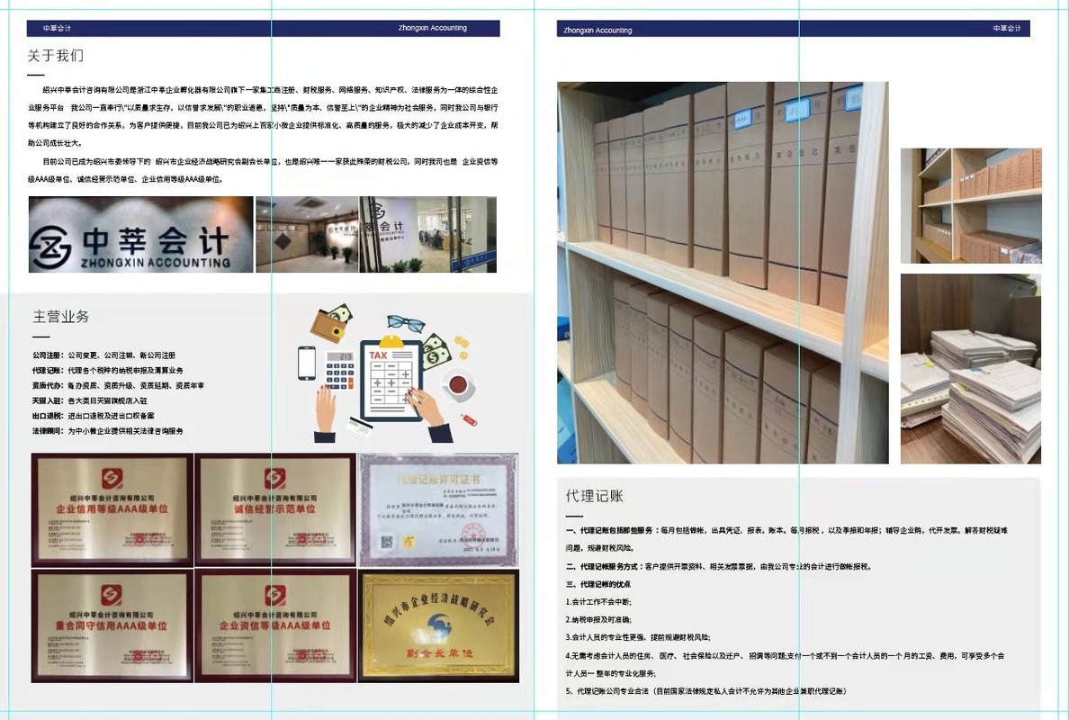 绍兴中莘会计咨询有限公司是浙江中莘企业孵化器有限公司旗下一家集工商注册、财税服务、网络服务、知识产权、法律服务为一体的综合性企业服务平台 我公司一直奉行\"以质量求生存,以信誉求发展\"的职业道德,坚持\"质量为本、信誉至上\"的企业精神为社会服务,同时我公司与银行等机构建立了良好的合作关系,为客户提供便捷,目前我公司已为绍兴上百家小微企业提供标准化、高质量的服务,极大的减少了企业成本开支,帮助公司成长壮大。