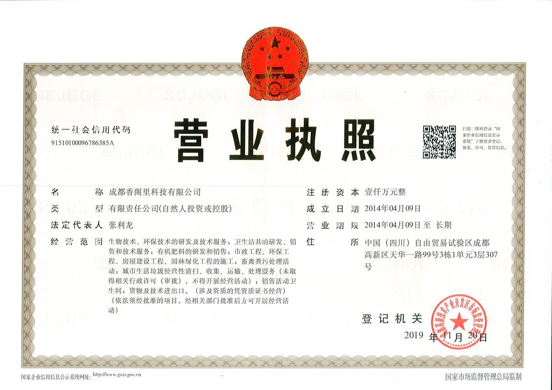 成都香阁里科技有限公司是一家以核心生物技术为支撑,融合生物和智能科技研发粪污生物降解处理技术的高科技公司。公司秉承“科技改善环境,生态延续未来”的使命,致力于成为全球领先的智能生态厕所领导品牌,用智能和生态科技持续改变人们的生活环境,创造美好生活。