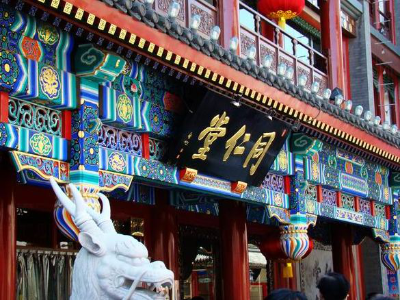 同仁堂药店位于北京市西城区前门大栅栏24号,品牌历史悠久,文化底蕴深厚,创建于清康熙八年(1669年)的老字号,为清朝宫廷供奉御药188年,在新中国成立后率先完成公私合营,是同仁堂品牌的发源地,也是中国最大的药店之一。店内营业面积共4600多平方米,有职工300余人。历代同仁堂人始终恪守“炮制虽繁必不敢省人工,品味虽贵必不敢减物力”的古训,讲求药德,以过硬的产品质量与诚挚的服务在市场中树立了良好的口碑和形象。