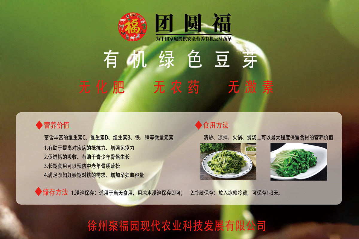 企业使命:为中国家庭提供安全营养有机豆芽蔬菜