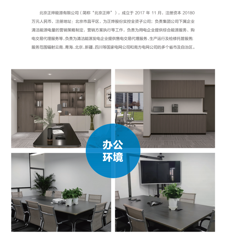 西藏正烨水电开发股份有限公司(以下简称“正烨股份”)是一家致力于清洁能源项目投融资、建设开发、生产经营及销售的综合性能源集团公司,截止目前在云南、四川、青海、新疆4个省市控股20座水电站,总装机容量54万千瓦、资产总额超50亿元、年发电量超15亿千瓦时。北京正烨能源有限公司(简称“北京正烨”),注册资本 20180万元人民币,为正烨股份实控全资子公司,业务范围辐射云南、四川、青海、新疆等国家电网公司和南方电网公司的多个省市及自治区,服务内容:1、负责集团公司下属企业清洁能源电量的营销策略制定,营销方案执行等工作;2、负责为用电企业提供综合能源服务、购电交易代理服务等;3、负责为清洁能源发电企业提供售电交易代理服务、生产运行及检修托管服务。
